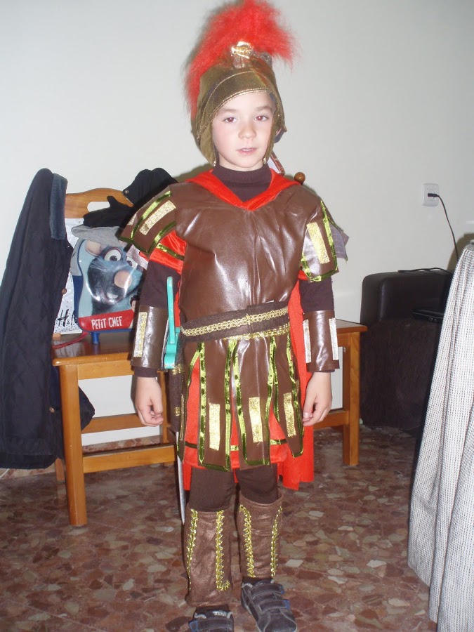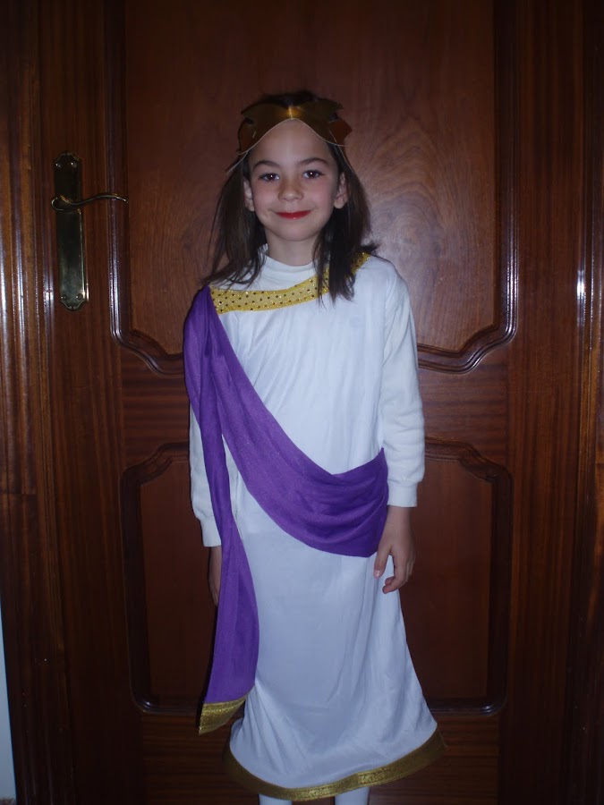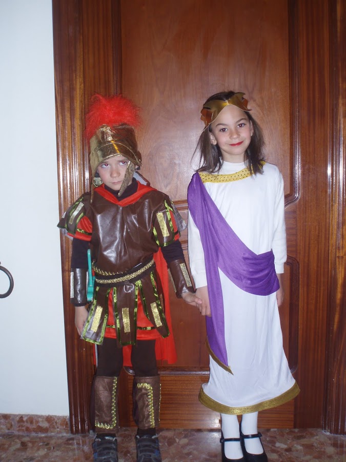 Y para el cole mis niños fueron de guerrero romano y princesa romana, pero estos disfraces fueron comprados, ya mi máquina de coser no daba para más.