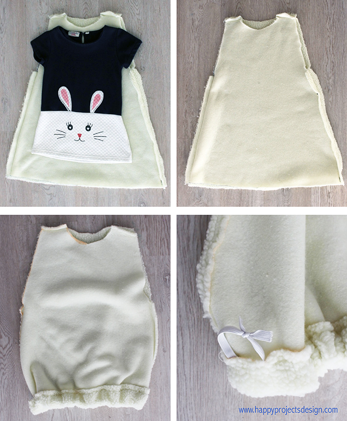Cose un dobladillo de unos 4 o 5cm en la parte inferior y pasa una goma por el interior para que el traje coja volumen.