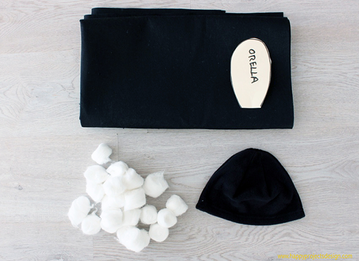Corta dos orejas ovaladas de fieltro negro (puedes hacerte un patrón con cartulina para que te queden las dos igual)