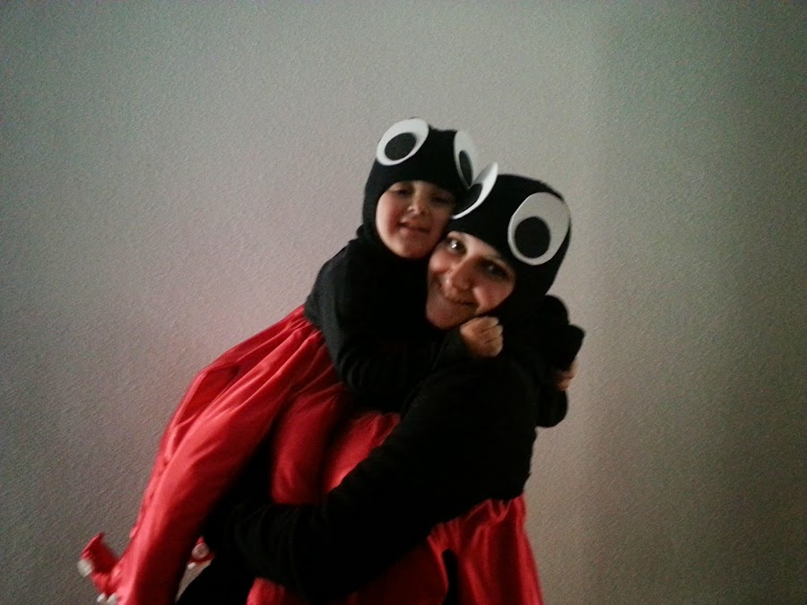 Aquí esta mi nieta Tania, y mi bisnieta, disfrazadas de pulpo, en el colegio