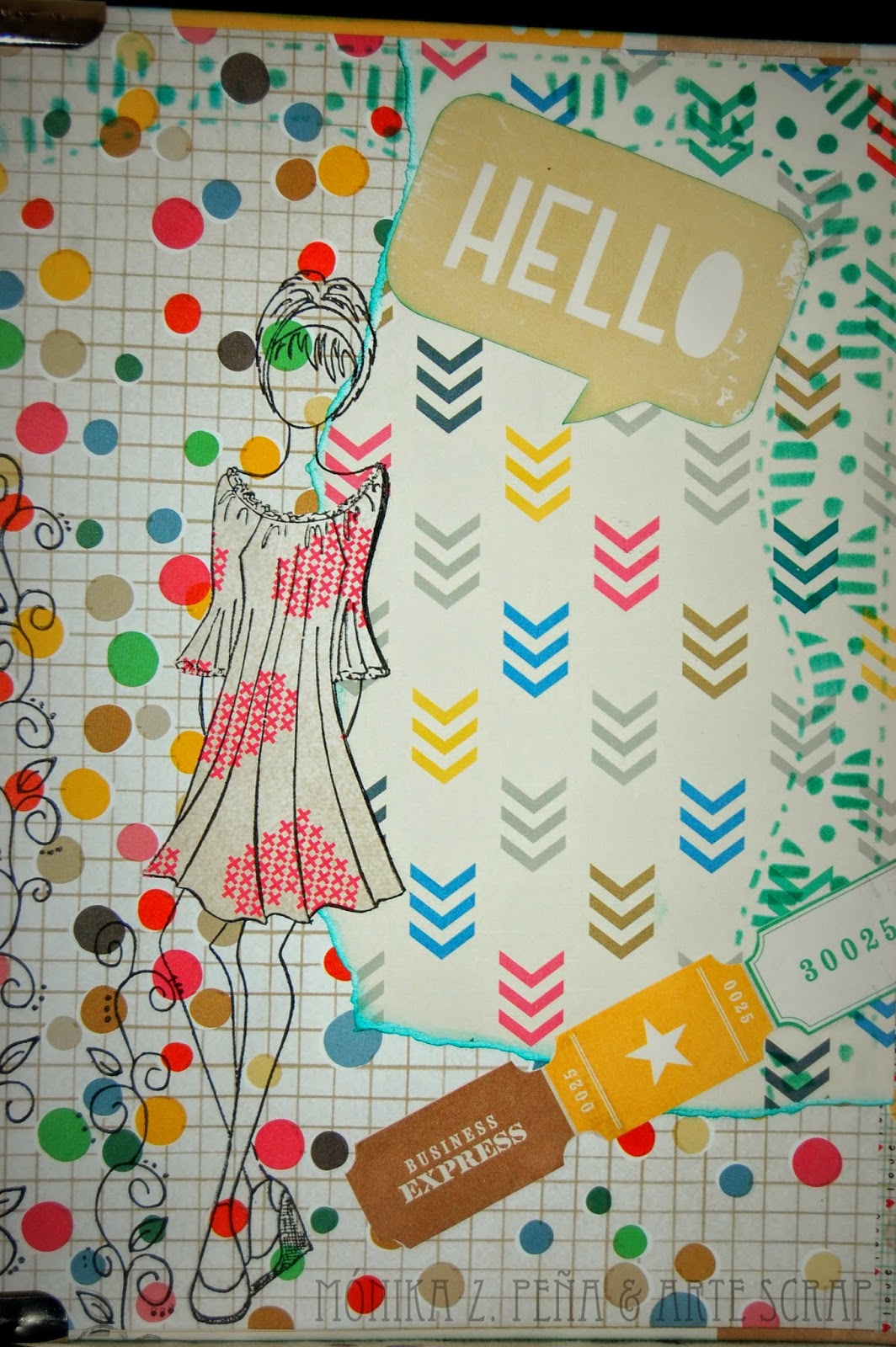 Para decorar la portada y el interior, usé un sello de Prima Marketing con una imagen muy juvenil diseñado por Julie Nutting.