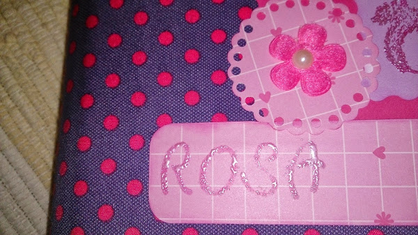 Olvidé hacerle una foto a la carpeta antes de forrarla para que hubierais podido ver el antes y el después. Pero de todos modos, os muestro unas fotos del resultado final. A Rosa le ha encantando y al ser una carpeta de tela será mucho más fuerte y duradera.