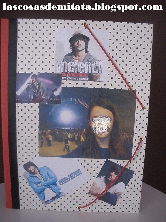 Ana quería una carpeta cuyo único requisito era que aparecieran imágenes de Melendi y otra de Paula en uno de sus conciertos (aunque he tapado su cara porque es menor), éste ha sido el resultado final y parece que ha gustado porque ahora tengo que hacer otra de Pablo Alborán jejeje ya os la enseñaré.