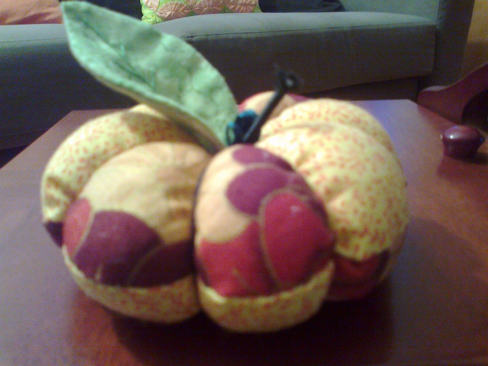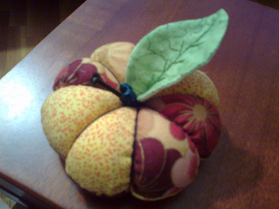 También os quería enseñar mi acerico calabaza, no me ha quedado "tan vistoso" como el original, y además mi móvil hace unas fotitos más bien malillas.