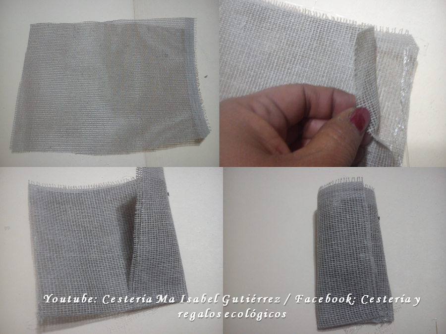 Aparte, cortamos rectángulos de tela, las medidas dependen del tamaño de la carreta, ya que al hacer los saquitos con estas telas, estos deben sobresalir un poco por encima de la carreta... doblamos a la mitad el rectángulo de tela, pegamos hacia el frente uno de los lados y luego el otro, formando así este tipo de saco...