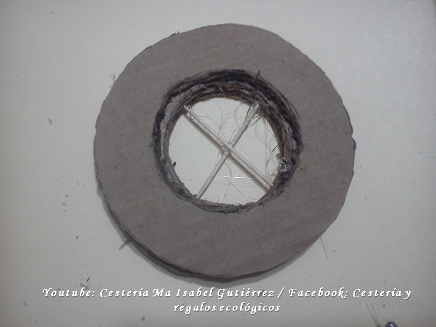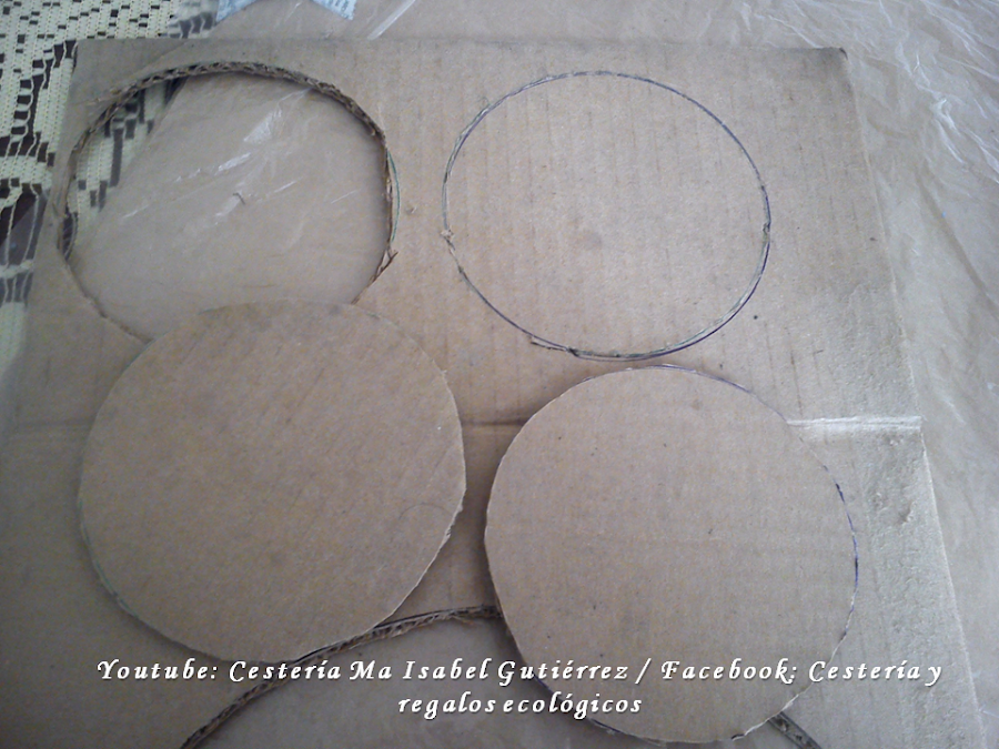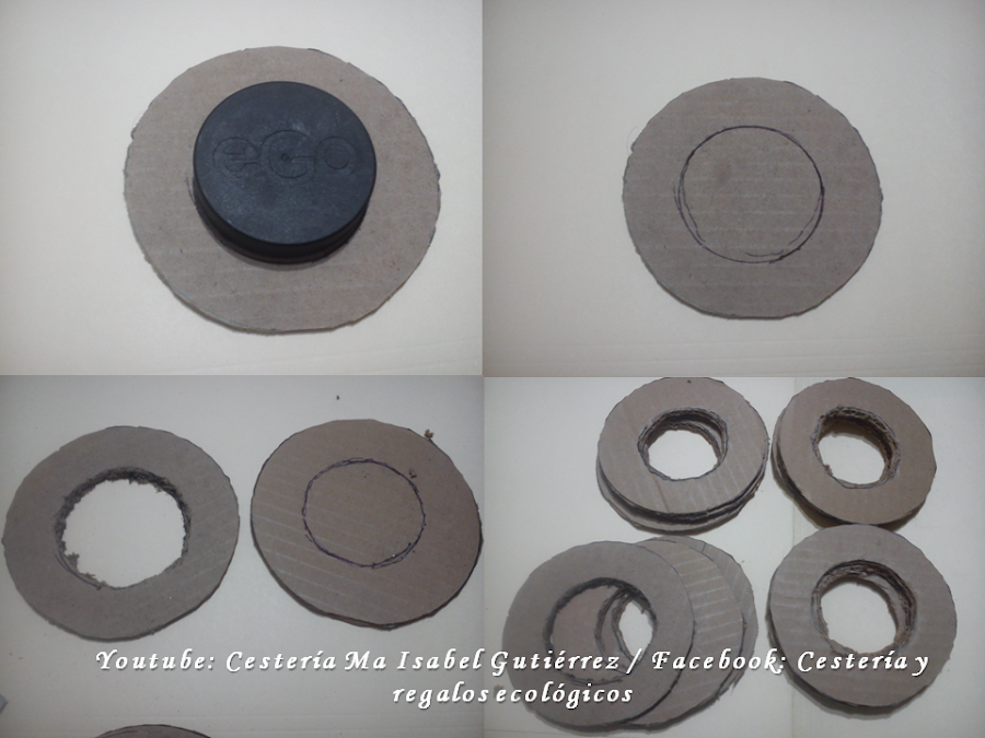 Utilizando otra tapa un poco mas pequeña que las ruedas de cartón, delineamos un círculo interno, recortamos...