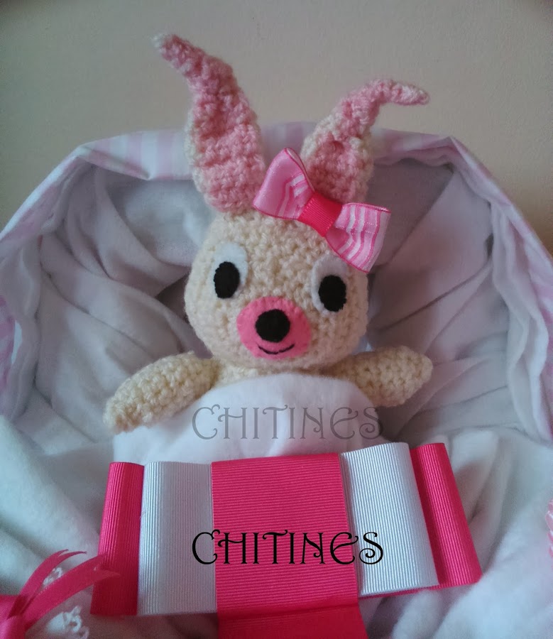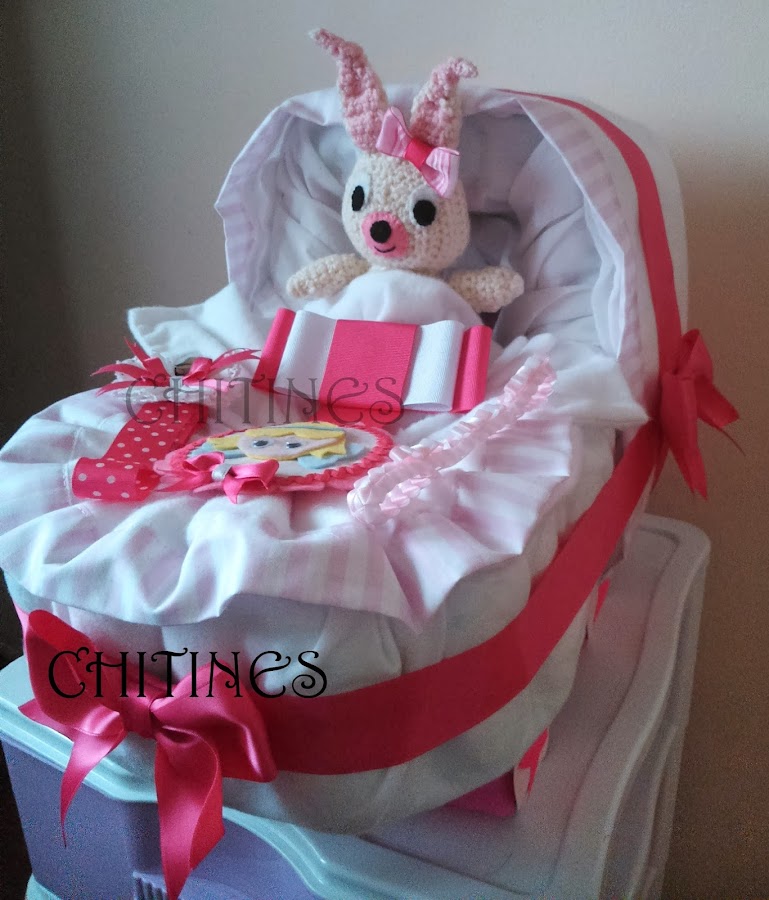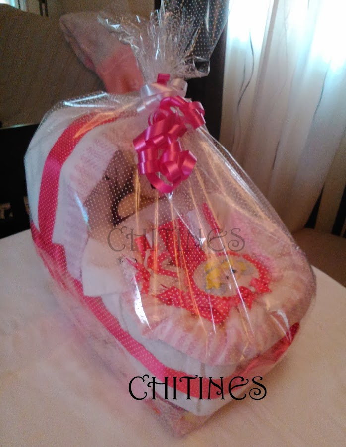 Hola a tod@s, aquí os presento la última cesta de pañales que he preparado. Es una moto grande y se compone: 30 pañales talla 3, 8 pañales talla 5, 1 body, 2 baberos, 1 par de calcetines, 1 gorrito de ...