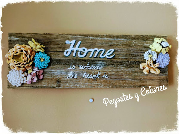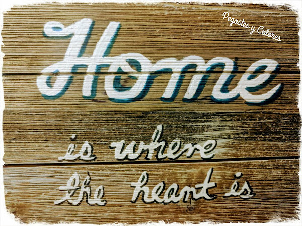 2.- Sobre un tablón ya lijado y con aspecto de envejecido, dibuje con lápiz la palabra Home" en grande y debajo con letras mas pequeñas "is where the heart is".