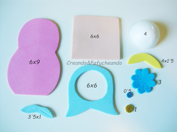 Los materiales son los mismos para las 4,tan sólo cambian el color de la Goma eva y los tamaños.