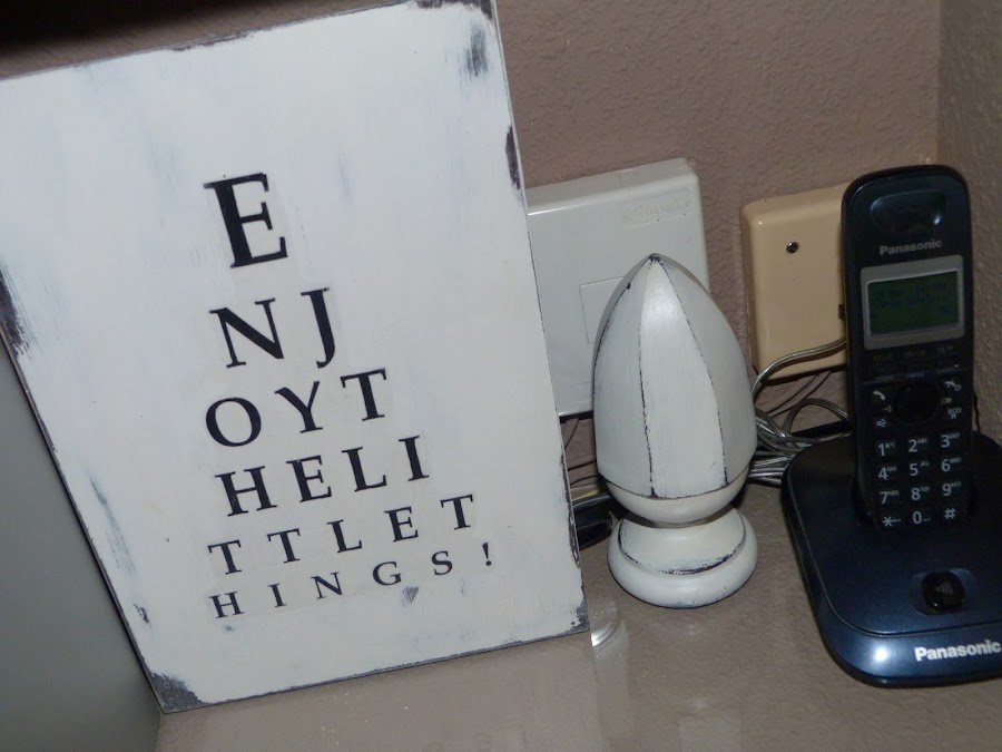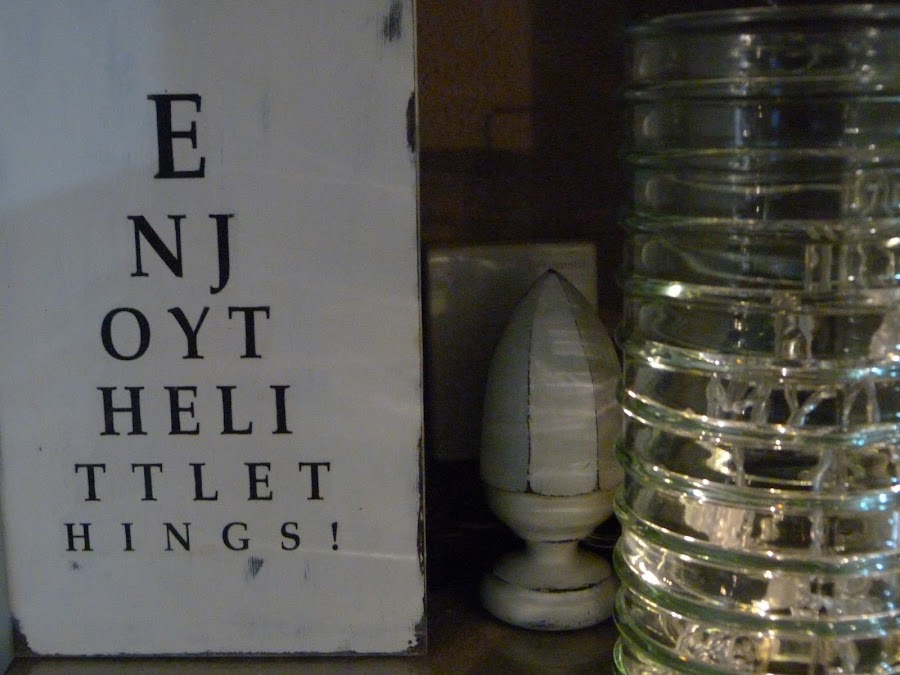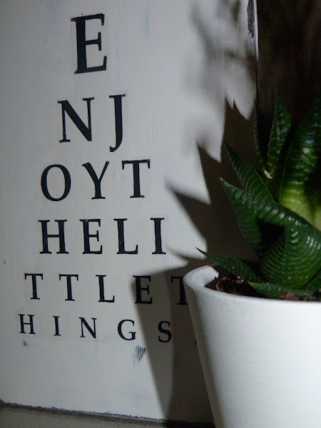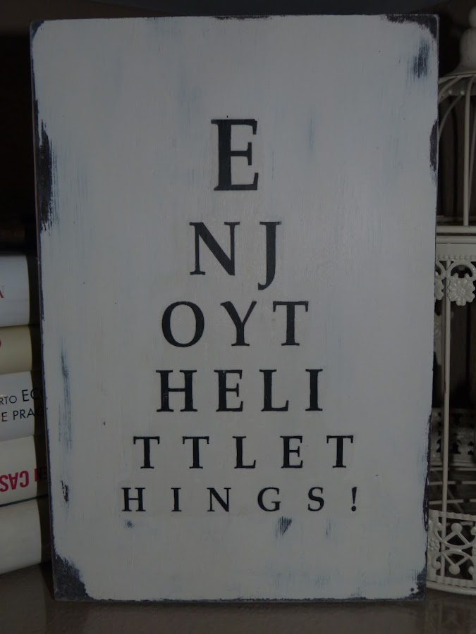 Es como esos paneles que utilizan los oftálmogos para graduar la vista, pero además, si unís las letras, veréis que contiene un mensaje: Enjoy the little things, Disfruta de las pequeñas cosas. Me encantó en cuanto la vi.