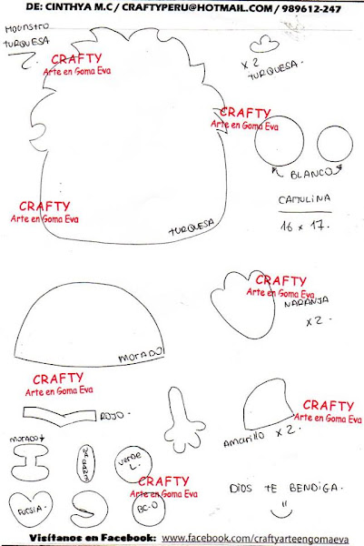 Los moldes que a continuación te presento no son de mi autoría son de la amiga CRAFTYPERU quien muy amablemente los obsequio en su facebook, yo lo que hice fue adaptarles el tamaño al tamaño del cartel y cambiarle algunos colores.