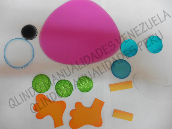 1. Vamos a comenzar con el monstruo rosa, es muy fácil solo traspasa los moldes al microporoso del color de tu preferencia, procura hacer el corte con las tijeras de manera tal que el mismo sea limpio y sin piquitos.