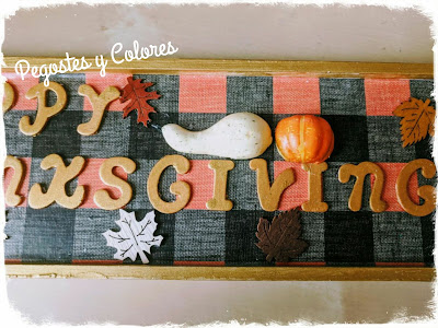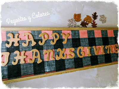 2.- Luego pinte las letras de dorado formando las palabras "Happy Thanksgiving". Les di dos manos de pintura dejando secar entre ellas.