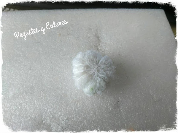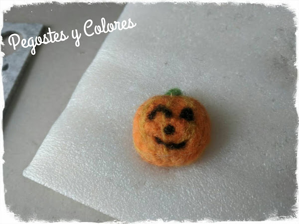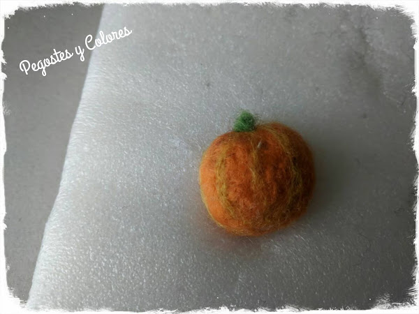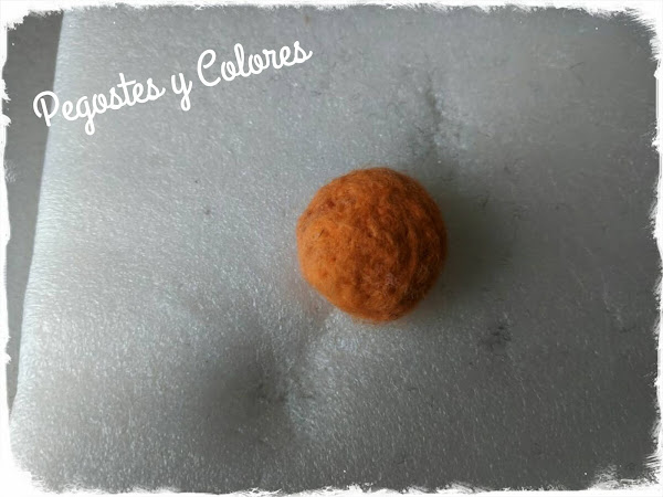 7.- Con lana afieltrada color naranja y una aguja cubri toda la superficie, picando hasta que quedara pareja.