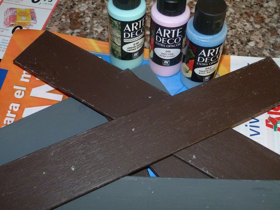 Pinté las tablas con colores oscuros (chocolate y gris).