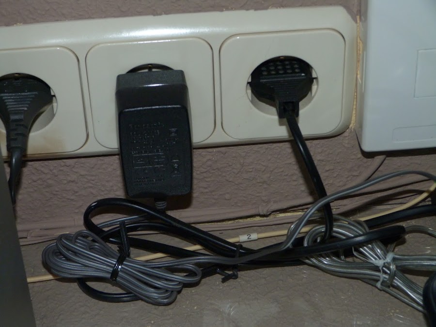 En un hueco de la librería del salón tenemos una regleta donde están enchufados el teléfono, el equipo de música, etc. Todos los cables están bastante bien recogiditos, la verdad, pero aún así odio que estén a la vista... y es que, por más que quieras, muchas veces es imposible ocultarlos totalmente.