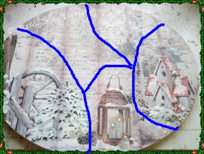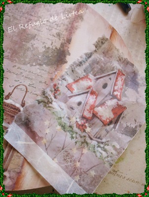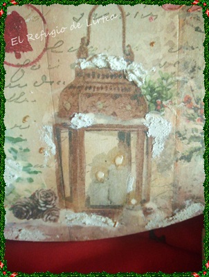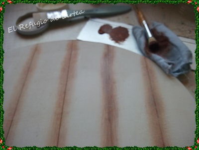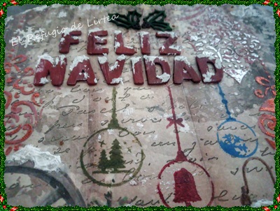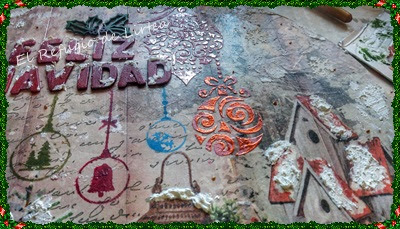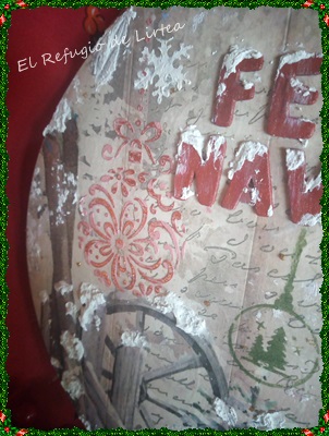 Pinto unas letras en color rojo y las pego sobre mi composición, así como alguna silueta navideña de madera que también pinto y pego.