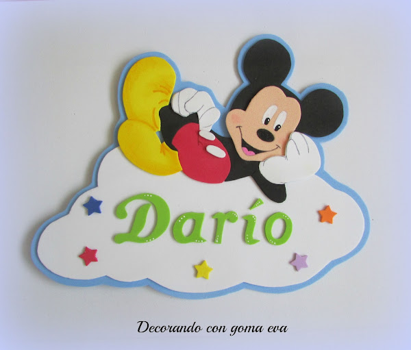 Cartel para la puerta con Mickey Mouse y el nombre de Darío