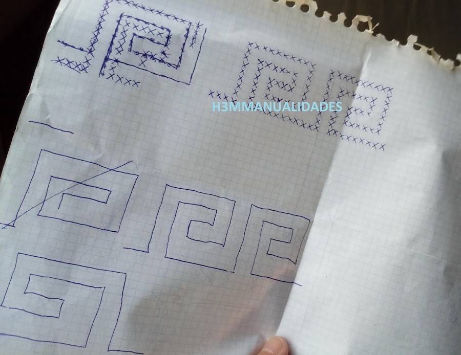 En cuanto al dibujo elegido, además del color azul, siento debilidad por las grecas griegas (influirá algo mi nombre???). Y eso es lo que puse en la base.