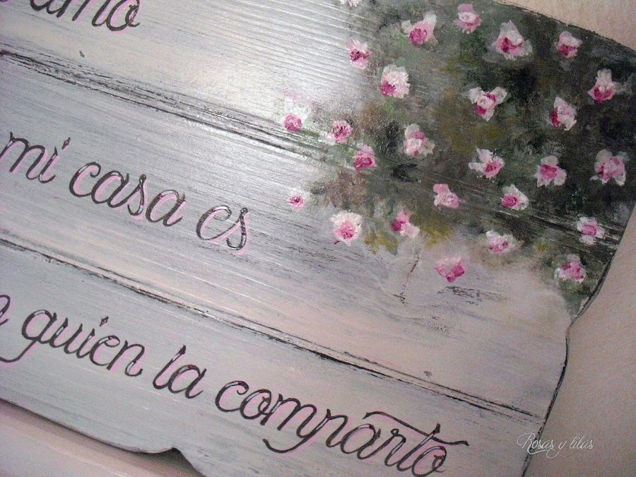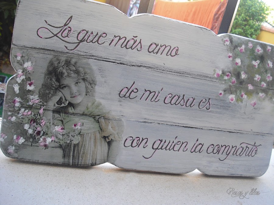 Le encargué a mi marido que confeccionara el cartel. Él lo cortó, le dió forma y un buen lijado.