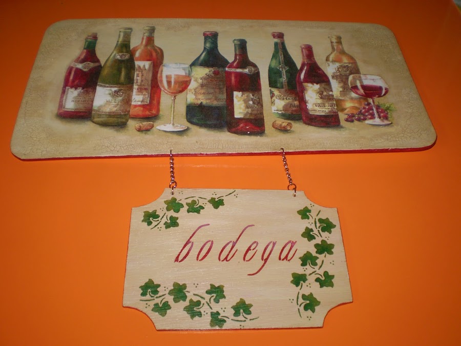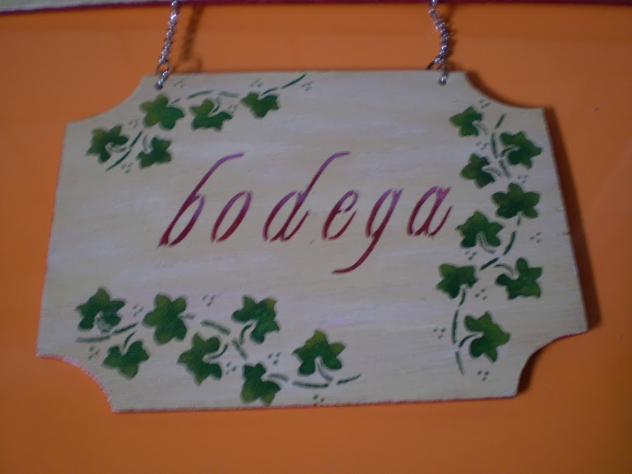 Y el último también realizado en madera, un cartel para una bodega.