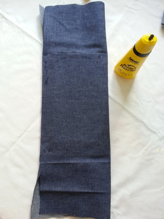5) Pon pegamento por el interior y pega toda la tela sobrante de la parte inferior hacia adentro.