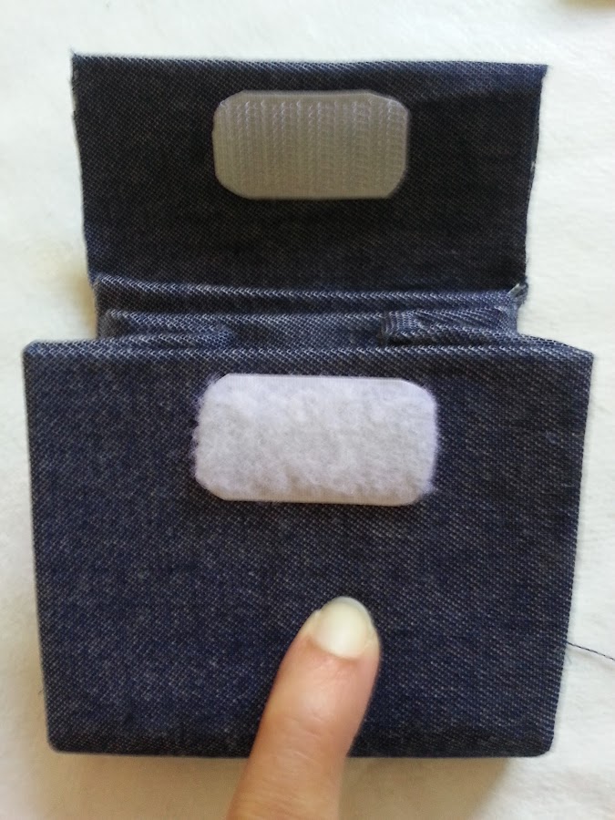 8) Pega uno de los velcro en la solapa y el otro en la parte delantera.