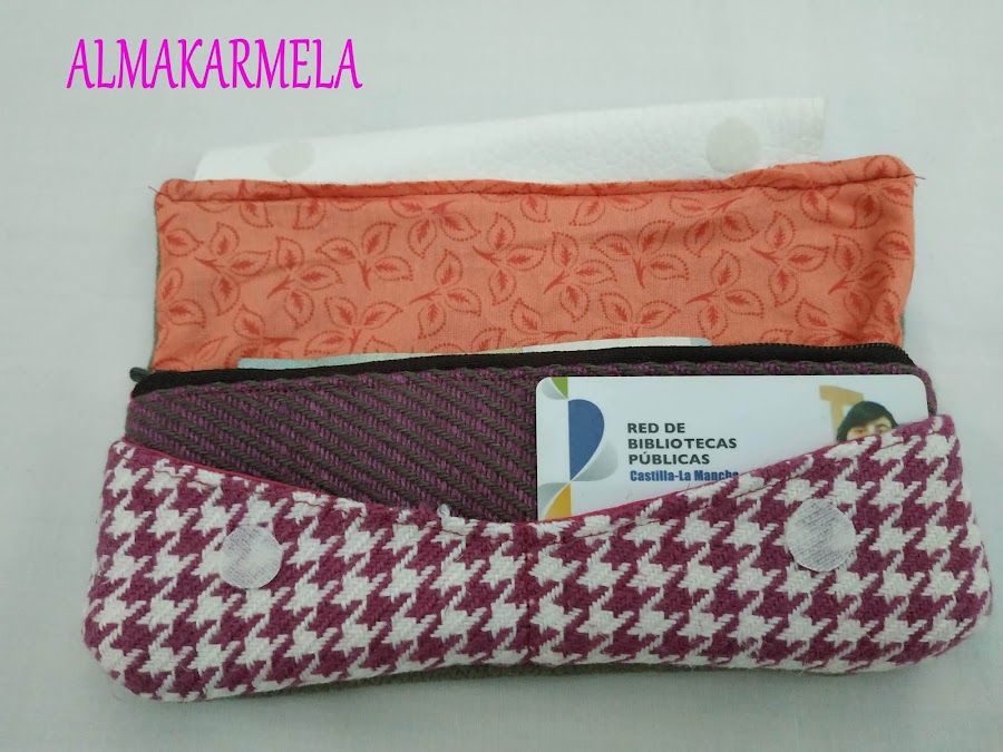 No tengo snap y para cerrar utilicé el clásico velcro, lo recorté en redondo y eso sí, hay que coserlo antes de coser la parte del tajetero, sino es bastante más complicado después.