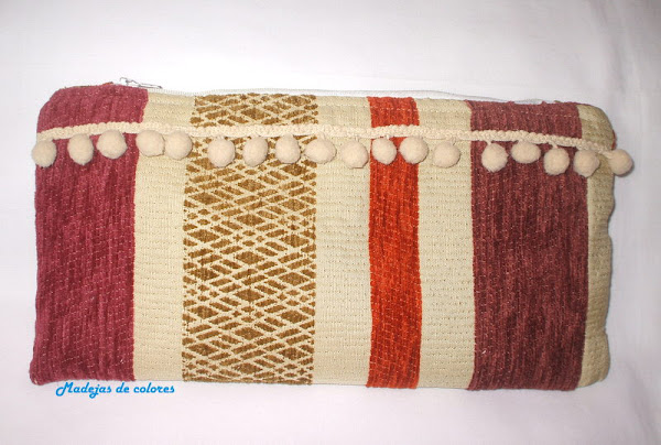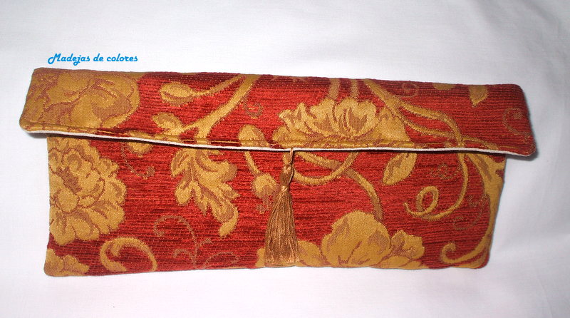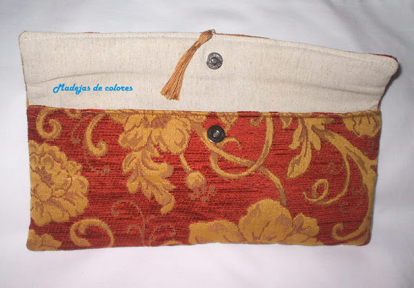 Esta otra con un estampado con textura en tonos caldero y amarillo dorado. He aprovechado unas muestras de tapicería, por eso algunas quedaron un poco pequeña la solapa.