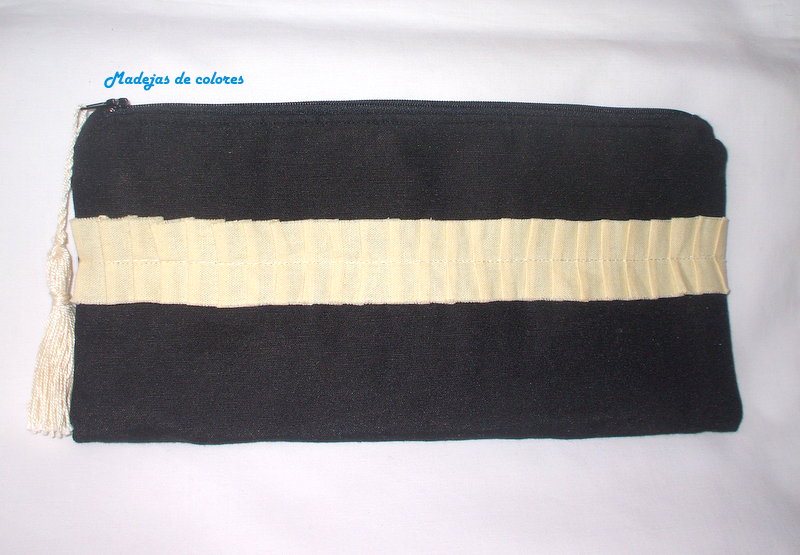 Y por último una más clásica, negra con un galón plisado en marfil y borlón crudo en cremallera.