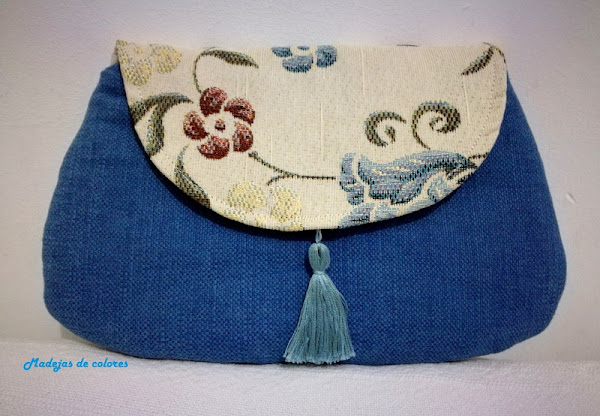 Mismo modelo pero en azul, en la tapa seguimos con flores, rojas y azules y borlón celeste.