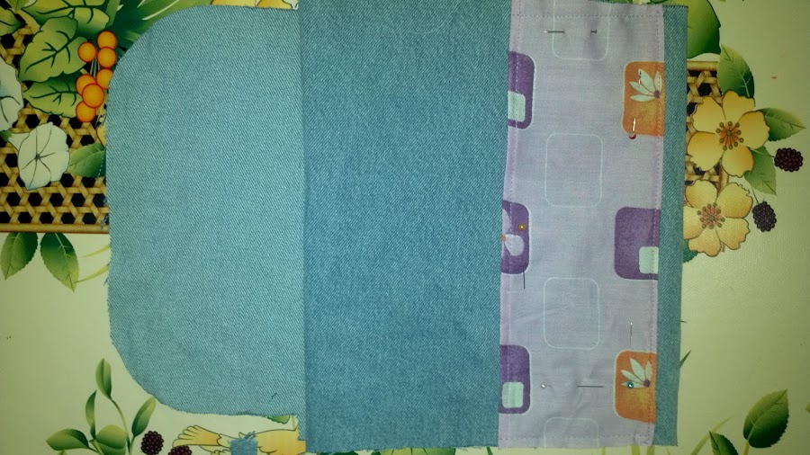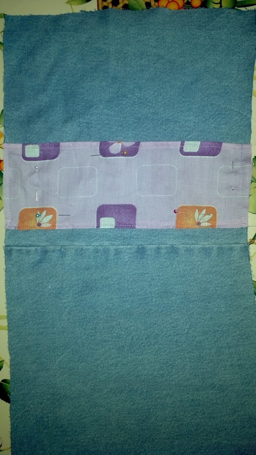 en la parte delantera, cortar una tira de la tela que mas les guste, para formar un bolsillo delantero.