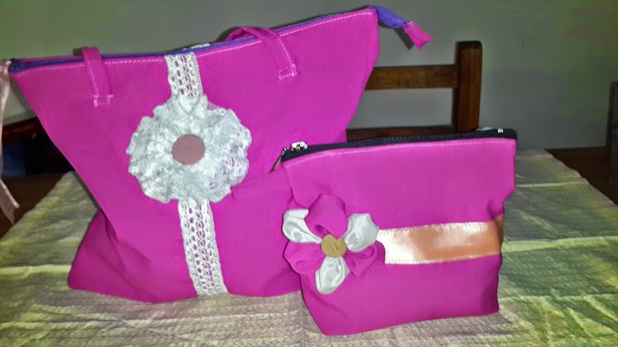 esta carterita la ice para regala a mi ahíja. Es reciclada de un jean, decorada con una flor y un corazón de fieltro.