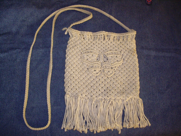 Estuve ordenando algunas cosas en mi casa, y encontre esta carterita o morral que hace unos años atras realizo mi tia en macrame. Si bien yo se realizar algunos nudos en macrame, en realidad no se las podria explicar muy bien, ya que siempre necesitaba la guia de mi tia para poder comenzar los trabajos, saber por ejemplo de que largo debia cortar los hilos ( es algo que nunca aprendi a calcular). Lamentablemente mi tia fallecio en diciembre del 2012, ya no tengo a quien consultarle mis dudas, ahora debo recurrir a internet. Pero como un pequeño homenaje a ella queria compartir esta carterita con ustedes, poder mostrar uno de los tantos trabajos que realizaba ella con sus manos. Mi tia Elda, era una persona muy habil para todo tipo de manualidades, siempre estaba dispuesta a aprender algo nuevo. Siempre estaba alegra a pesar de sus problemas, era el alma de las fiestas familiares, una persona dispuesta todo el tiempo a ayudar al projimo sin esperar nada a cambio.
