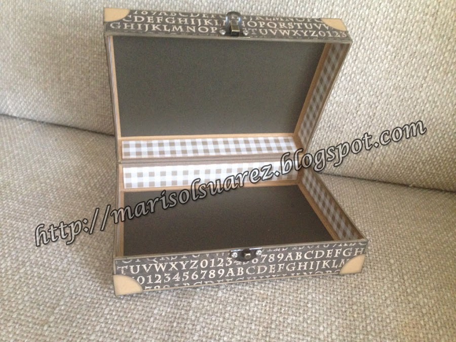 Partiendo de una plancha de cartón, y con ayuda de un cutter, una regla, cola y papeles decorados, salió esta bonita maleta, para guardar fotos, o un álbum o para lo que queramos.