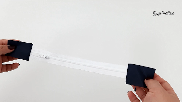 Primero vamos a preparar la cremallera, vamos a coserle un par de embellecedores en los extremos, así como ves en la imagen de abajo.