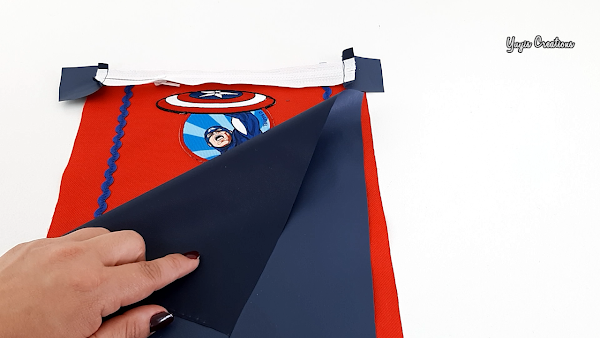 Ahora tomamos la tela exterior y la llevamos hacia el lado que nos queda de la cremallera y hacemos lo mismo con el forro procurando alinear bien las telas: