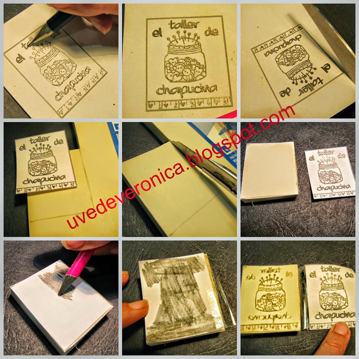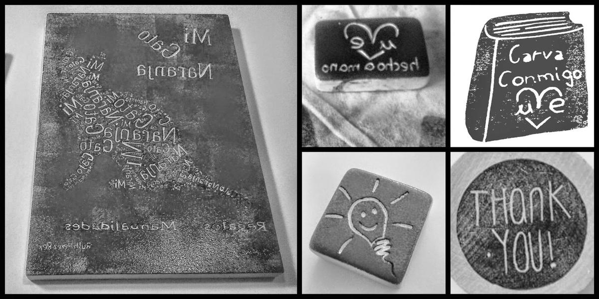 Este tipo de sellos es a la inversa, sólo carvamos el dibujo y se imprime todo excepto la siguleta, letras o dibujo.