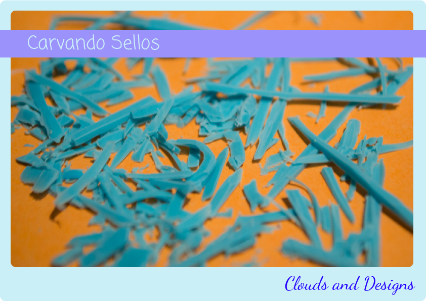 Todo el mundo sabrá ya como se carva un sello, y es bastante sencillo. Sólo hay que tener en cuenta una cosa muuuuy importante, calcar el dibujo que se quiera estampar, pero del revés!