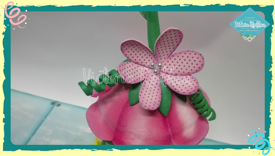 A la unión del foamy que recubre la lata de leche con dos hojas y una flor.