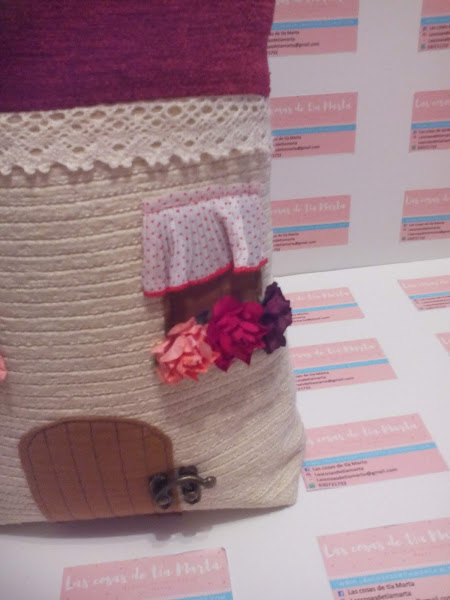 Para la parte de dentro hize un saco que rellené con fibra hueca y arena. La casa en sí es una funda que se puede quitar y así poderla lavar.