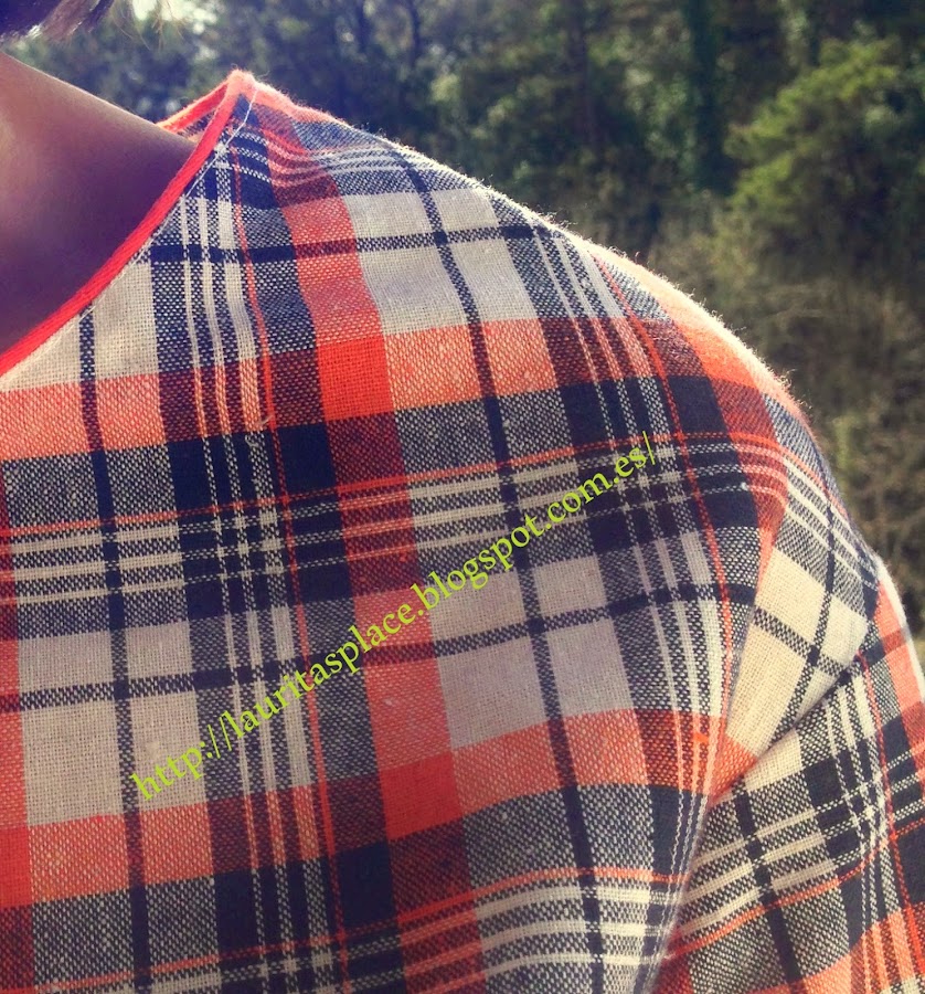 Para hacer la casaca me basé el el tutorial de SARA decosturasyotrascosas, pero a pesar de que lo explica todo perfectamente, mi segundo problema apareció al coser el cuello, ya que me quedaba muy ajustado y al ir escasa de tela, los cuadros del cuello no casaban muy bien al unirlos al cuerpo.