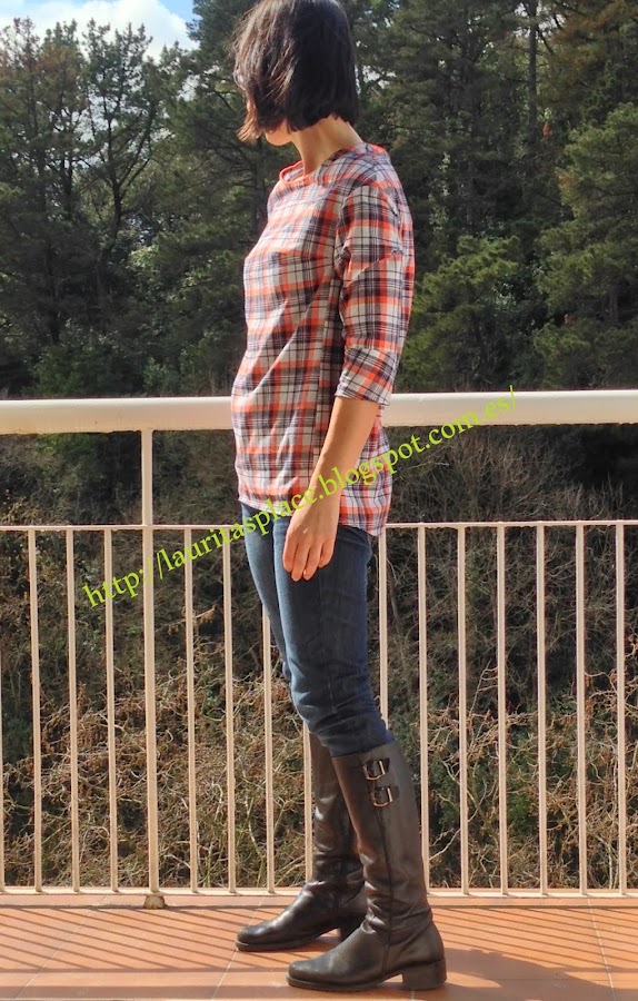 Al principio era una Blusa del Burda 1-2013 modelo 111. La idea ya fue mal desde el principio porque sólo tenía un metro de doble ancho en tela de cuadros. La tela llevaba al menos dos años en el cajón de las telas. La había comprado en Madrid c/Atocha por ...1â?¬!!