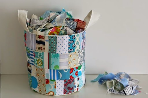 Esta otra idea, es genial y encima no necesitamos ni aguja ni hilo!! Tampoco hay que cuadrar los retales :-) Esta idea la explica perfectamente Cluck Cluck Sew en su blog.