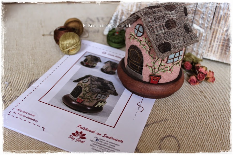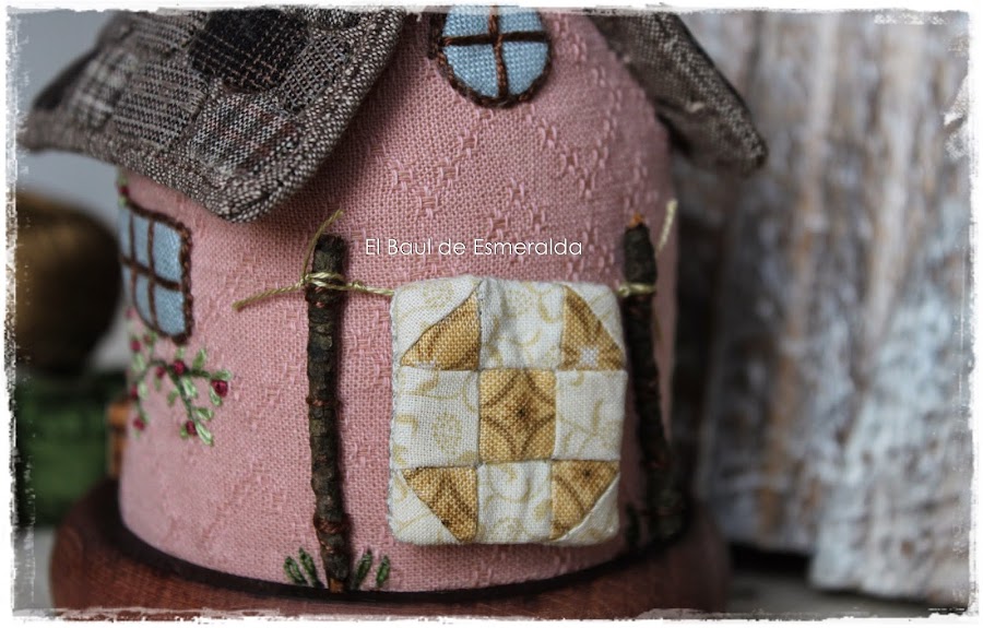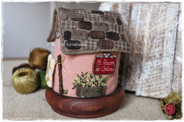 Es un alfiletero en forma de casita que se ha convertido en el pequeño tesoro de mi rincón de costura: