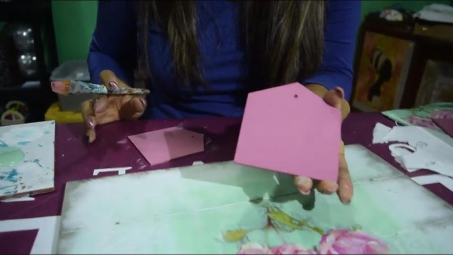 Pintaremos las 3 tablitas pequeñas de color rosa vieja, las podemos decorar o hacer un flotado, pero esto es cuestión de gusto.