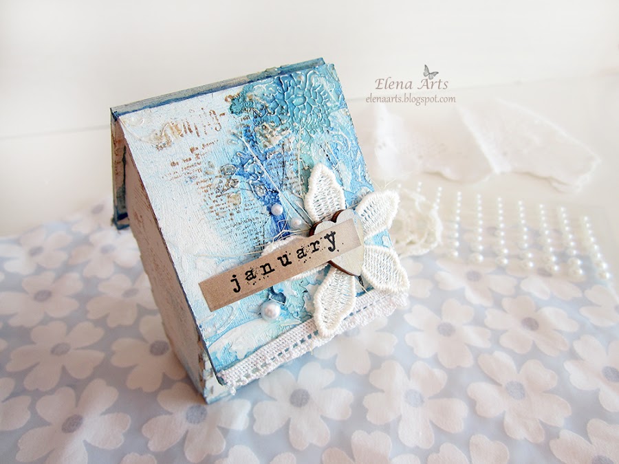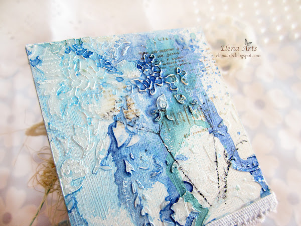 Después creé la textura con la plantilla copos floral de Todo Stencil y cuando la pasta se secó, eché por encima pintura azul en spray.