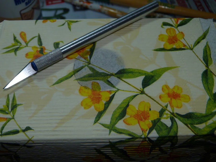 Con el cúter se corta la servilleta que cubre la ventana.