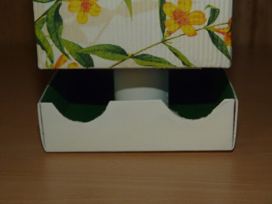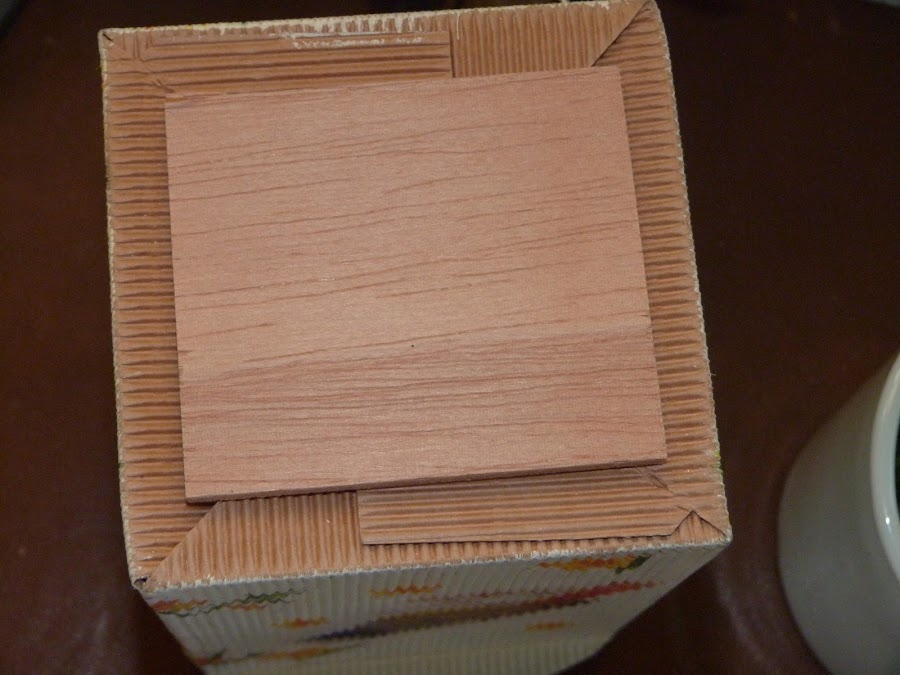 En la base de la caja pegué un recorte de madera que le diera solidez al cartón.