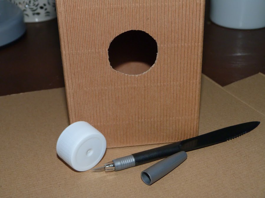 Lo primero, marcar la ventanita de la casa con un tapón y cortarla con un cúter.